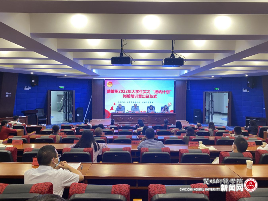 9月15日下午,我校与共青团楚雄州委联合举行楚雄州2022年大学生实习“扬帆计划”岗前培训暨出征仪式。校团委相关负责人、团州委分管副书记、2022年“扬帆计划”州级实习单位负责同志、我校实习大学生参加岗前培训暨出征仪式。