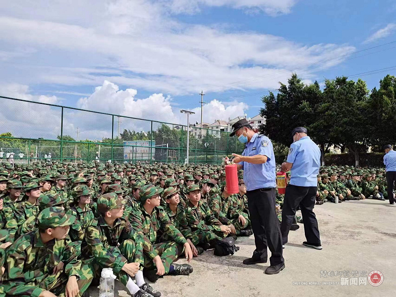 此次培训纳入2022级新生军训环节,共计3场次、6课时。此次培训,保卫处结合学校近两年来发生在身边的电信诈骗典型案例强调防范电信诈骗的“十三个凡是”,介绍日常生活中防盗方法,重点开展了新生消防知识培训和灭火演练。