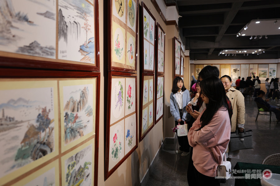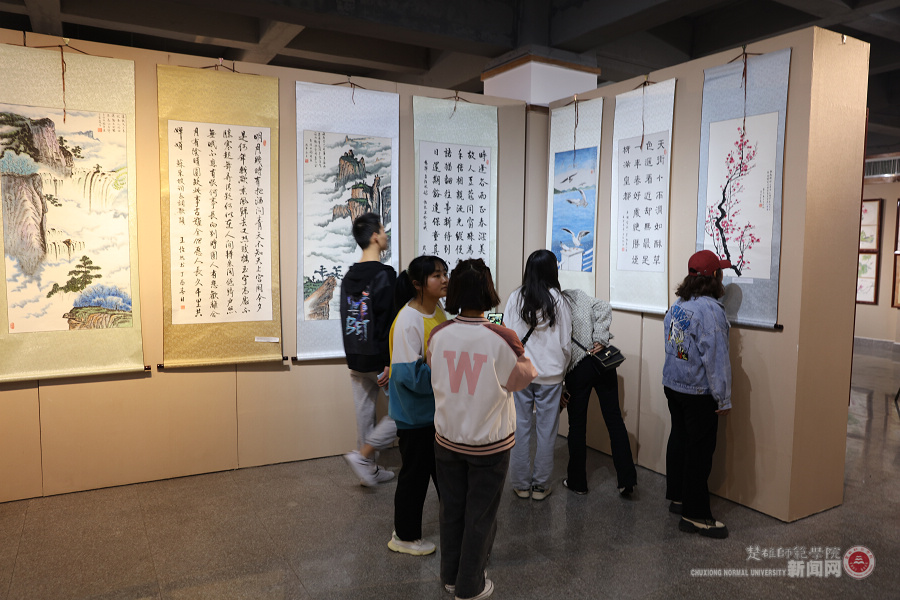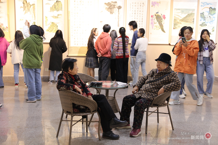 工会.离退休工作处、图书馆、物电学院、艺术学院的负责同志,以及物电学院、艺术学院部分师生和离退休老同志200余人参加开展仪式,并参观了书画作品。