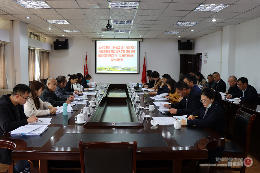2023年3月8日上午,云南省教育厅检查组组长杨永一行到我校开展审计整改工作的实地核查,学校党委副书记、校长王资,副校长何永泰,及相关部门负责人参加了实地核查工作。核查议程按照听取汇报、现场查看材料和意见反馈进行。