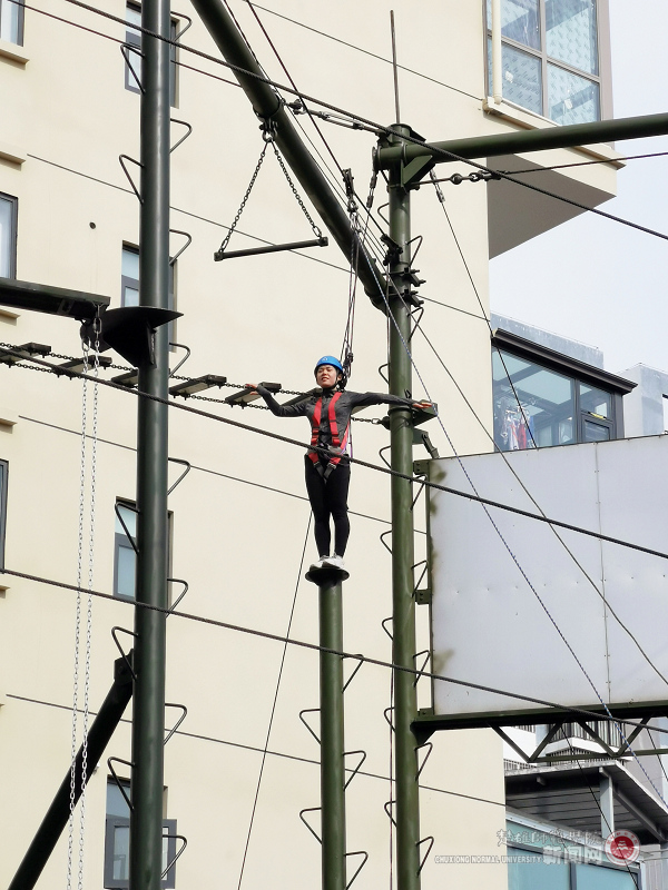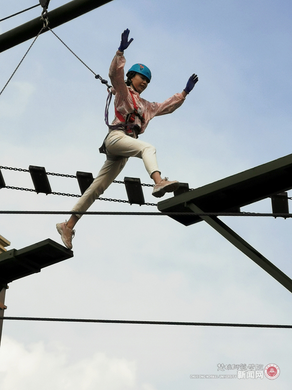 活动中,参训人员在专业教练的指导下完成了团队文化展示个和两个高空项目两项拓展活动。在团队文化展示环节,队员们在相互合作中增进了彼此的了解和信任。在高空项目环节,辅导员们勇于克服自身恐惧,积极挑战体验“凌空跨越”和“极速追捕”两个项目,高空项目有利于帮助辅导员们塑造缓解焦虑、克服恐惧、激发潜能、增强自信、超越自我的良好心理品质。整个训练过程中,大家全心投入,积极参与,在活动中学会了沟通,促进了交流,同时也愉悦了身心,传递了快乐,最终大家圆满完成了项目体验。