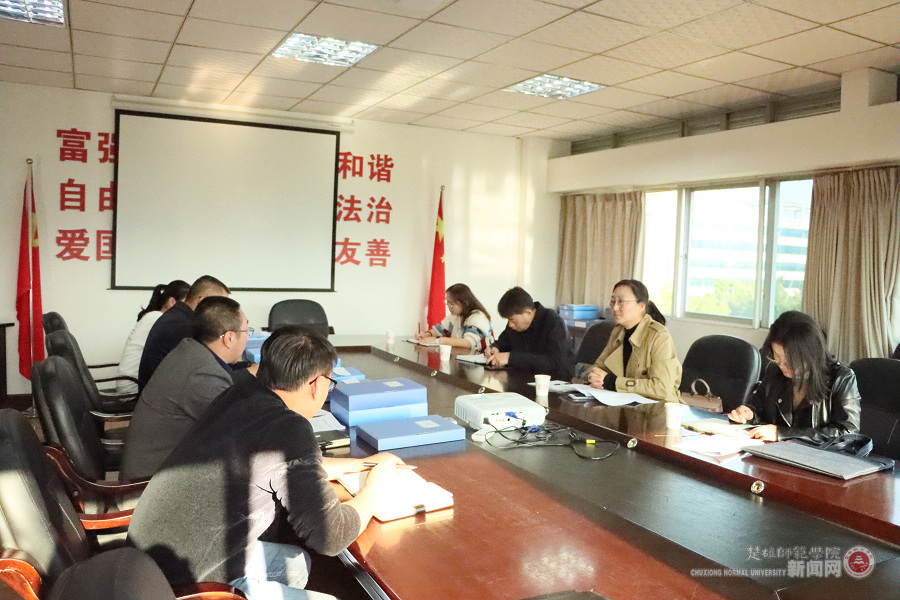 调研组一行在尚行楼十二会议室召开会议,听取楚雄师范学院党委统战部部长刁国庆关于学校民族宗教工作开展情况的报告,查阅相关工作台账。