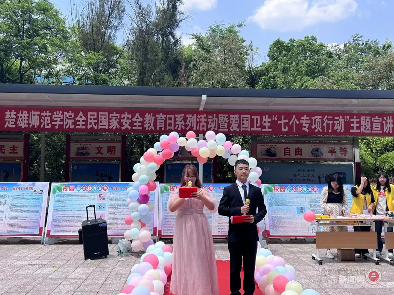 为贯彻落实习近平总书记关于新时代爱国卫生运动和国家安全观重要指示精神,实现从环境卫生治理向社会健康管理转变,巩固疫情防控成果、维护人民健康提供有力保障以及贯彻总体国家安全观,增强全民国家安全意识和素养,夯实以新安全格局保障新发展格局的社会基础。4月19日全民国家安全教育暨爱国卫生“七个专项行动”宣讲活动在花果山校区溢香餐厅门口顺利举办,此活动由校学生会承办。