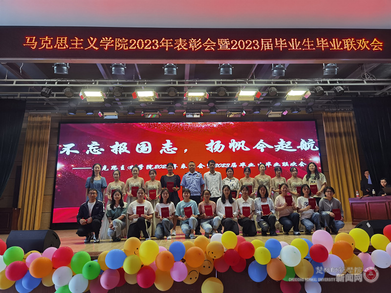 活动分为三个篇章进行。第一篇章为“向榜样学习”的励志教育篇章。马克思主义学院表彰了2023届优秀毕业生、2023年学生先进集体、优秀个人。邀请以一线教师、宿管老师、安保人员为代表的身边榜样为受表彰者颁奖。鼓励在校师生戮力同心,团结奋斗,勉励毕业生以榜样为力量,踔厉奋发。