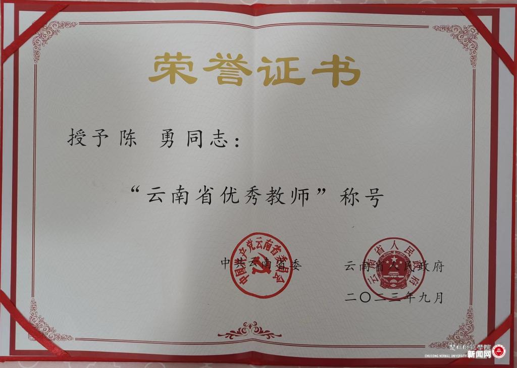2022年入选云南省“兴滇英才支持计划”教学名师,2023年被中共云南省委 云南省人民政府授予“云南省优秀教师”荣誉称号。